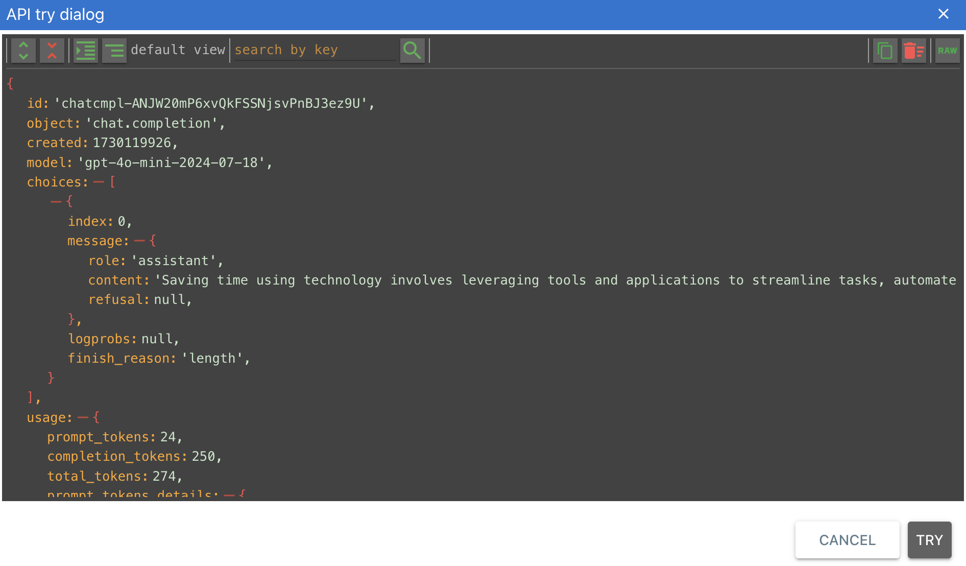 If, however, we turn on streaming, we will start seeing the results right away - this is especially useful for long AI responses: