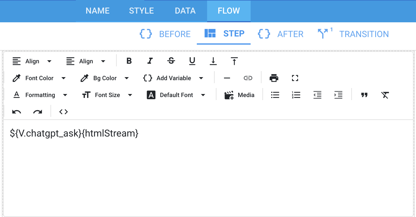 In your app, you would refer to the data you wish directly, e.g. above assuming the API call is V.chatgpt_ask