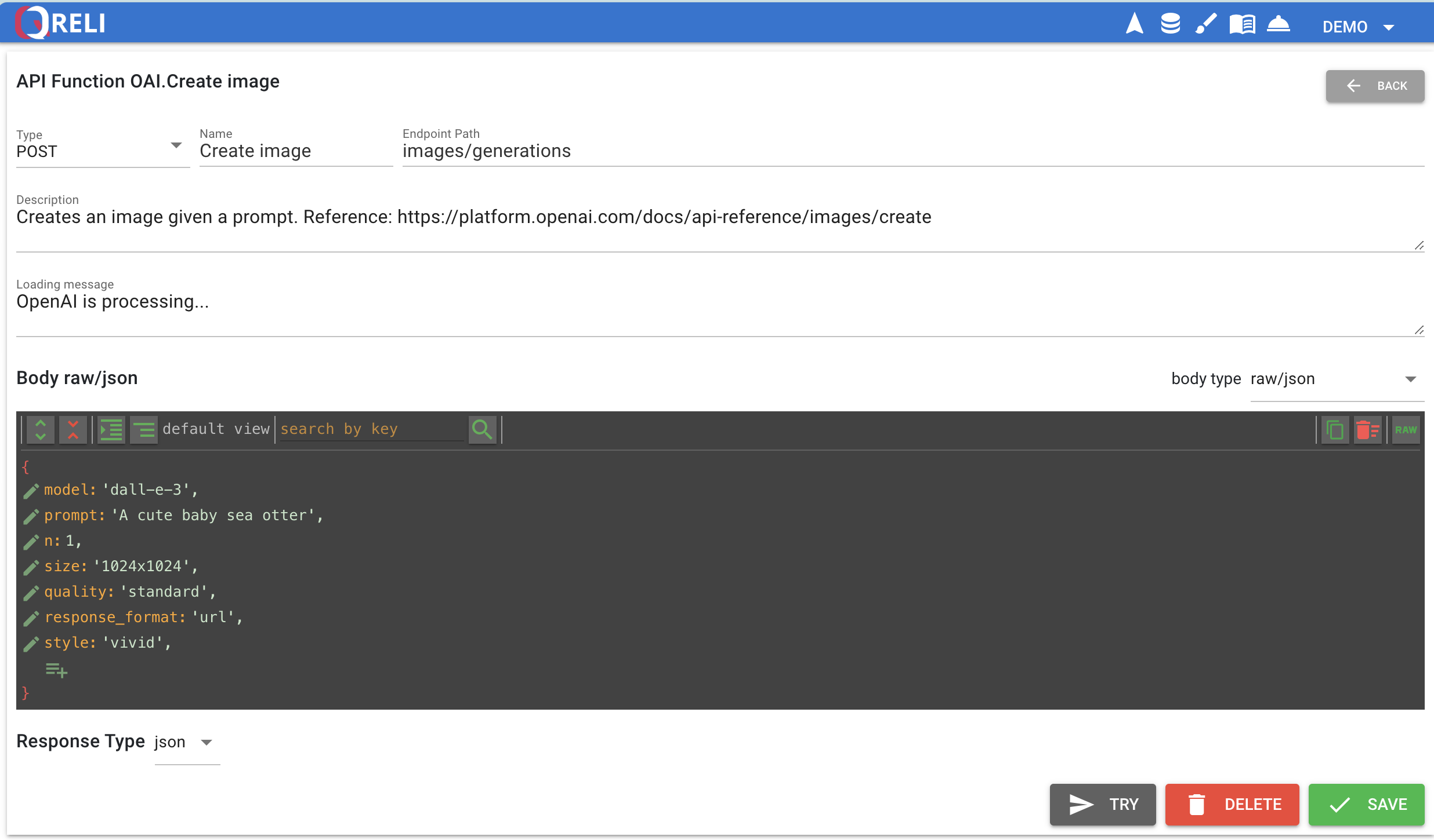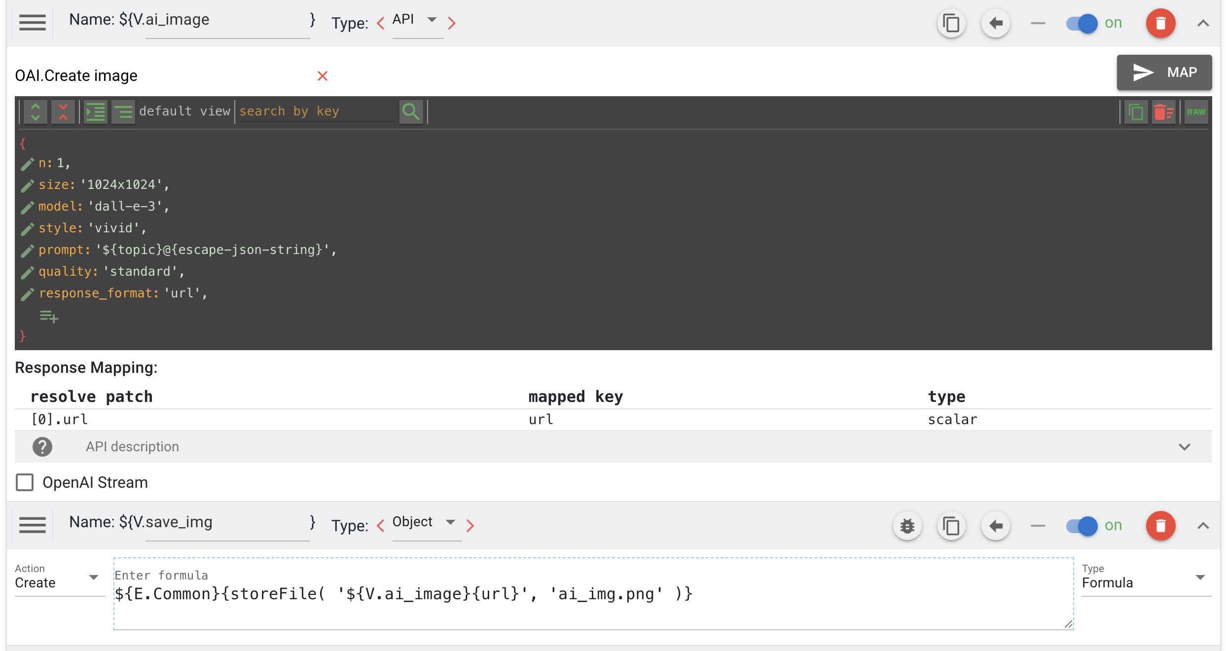 To create an image with OpenAI, just use the Create image function: