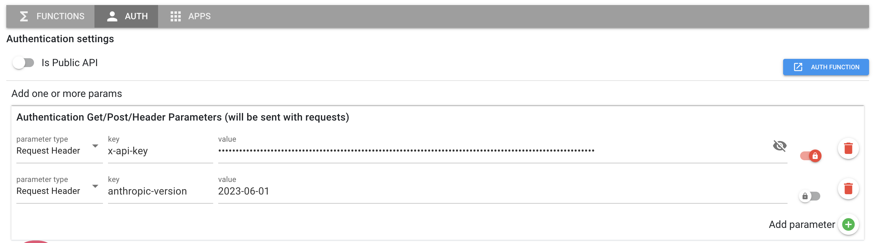 After importing Claude, we set up our Authentication — get your x-api-key from your Anthropic site: