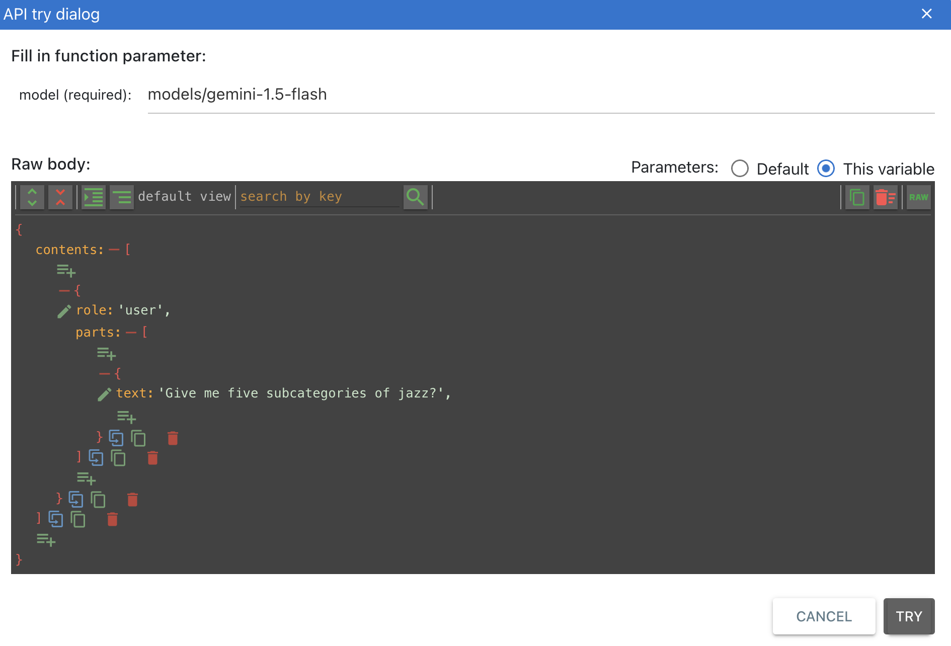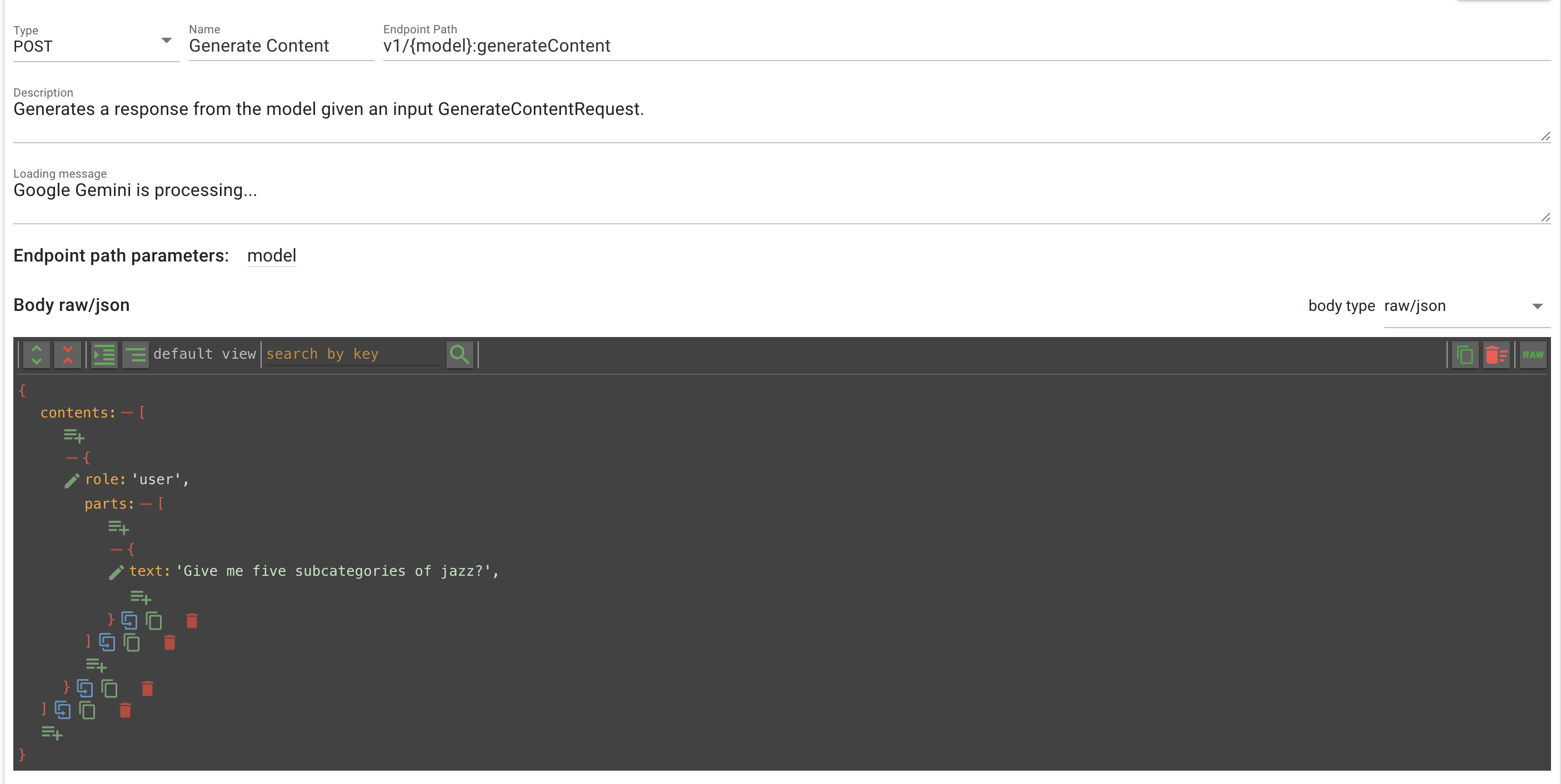 We need to provide the model in the URL; for example, let's use models/gemini-1.5-flash