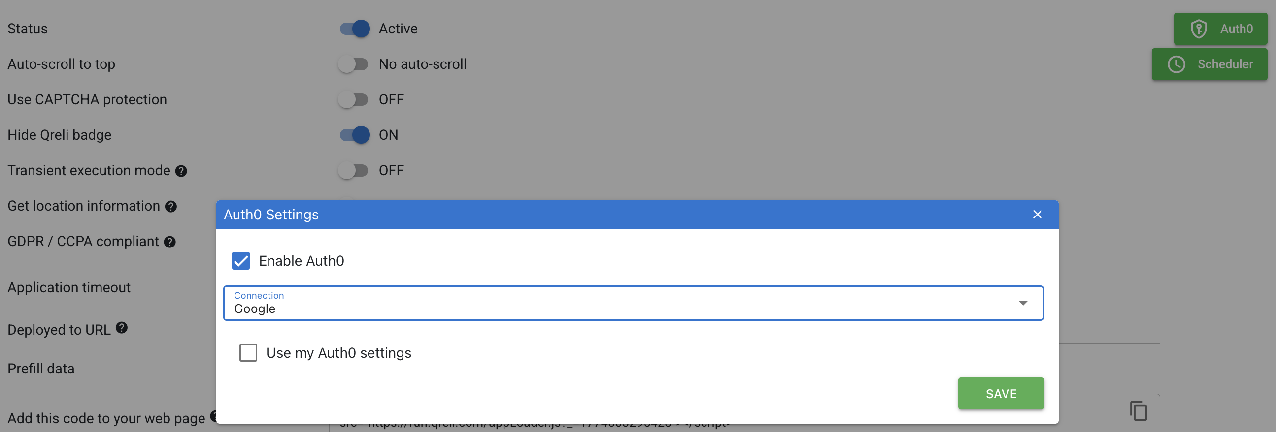 Once set up in Deploy > Set, simply add a button and check the Auth0 option; see the Button definition to learn how to use.