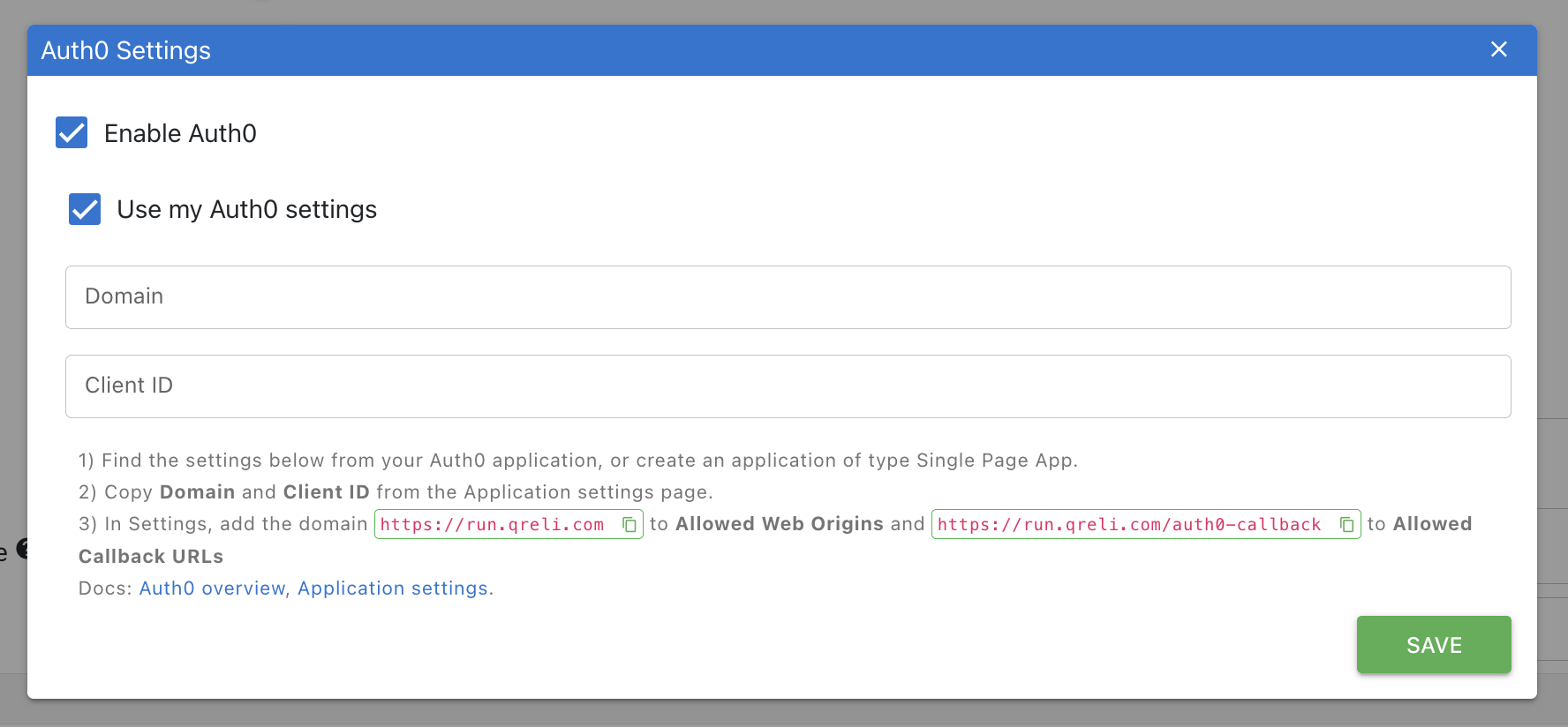 Qreli includes built-in end-user authentication with Auth0 (https://auth0.com).