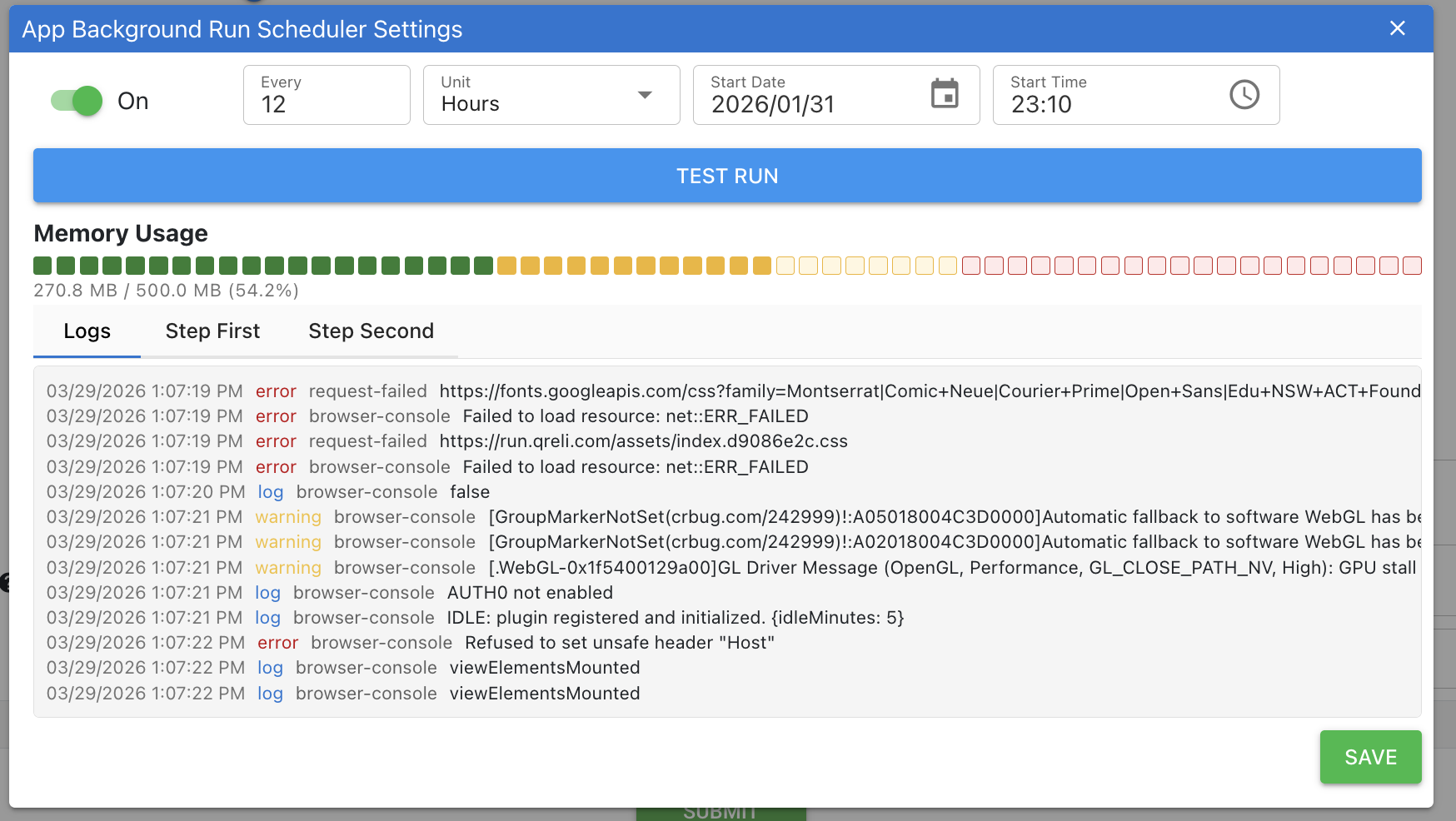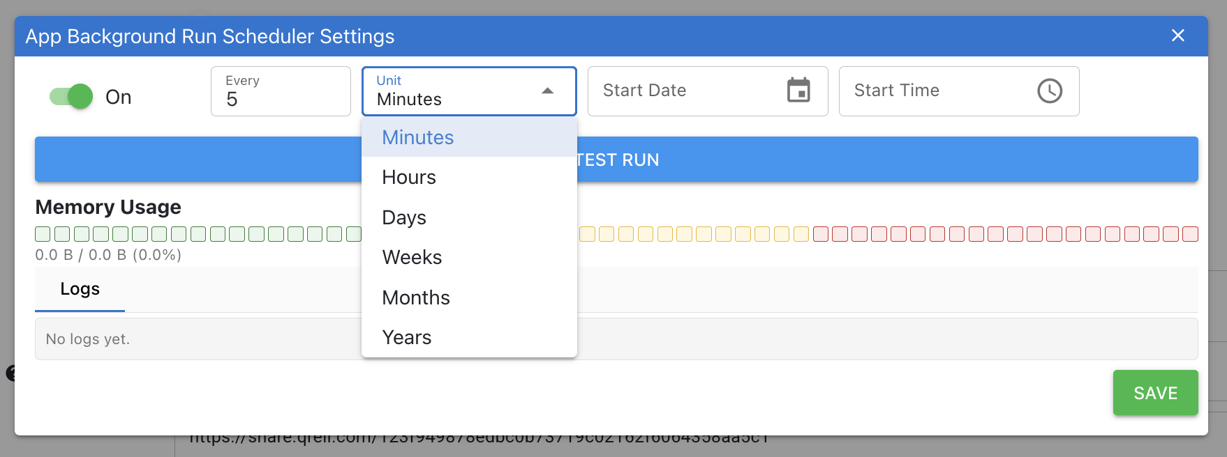 The scheduler allows you to run apps on a pre-defined schedule. You will find it in Deploy > Set (it's green when active, gray otherwise):